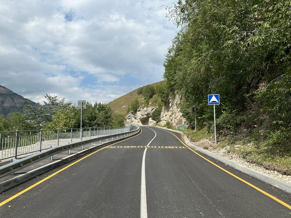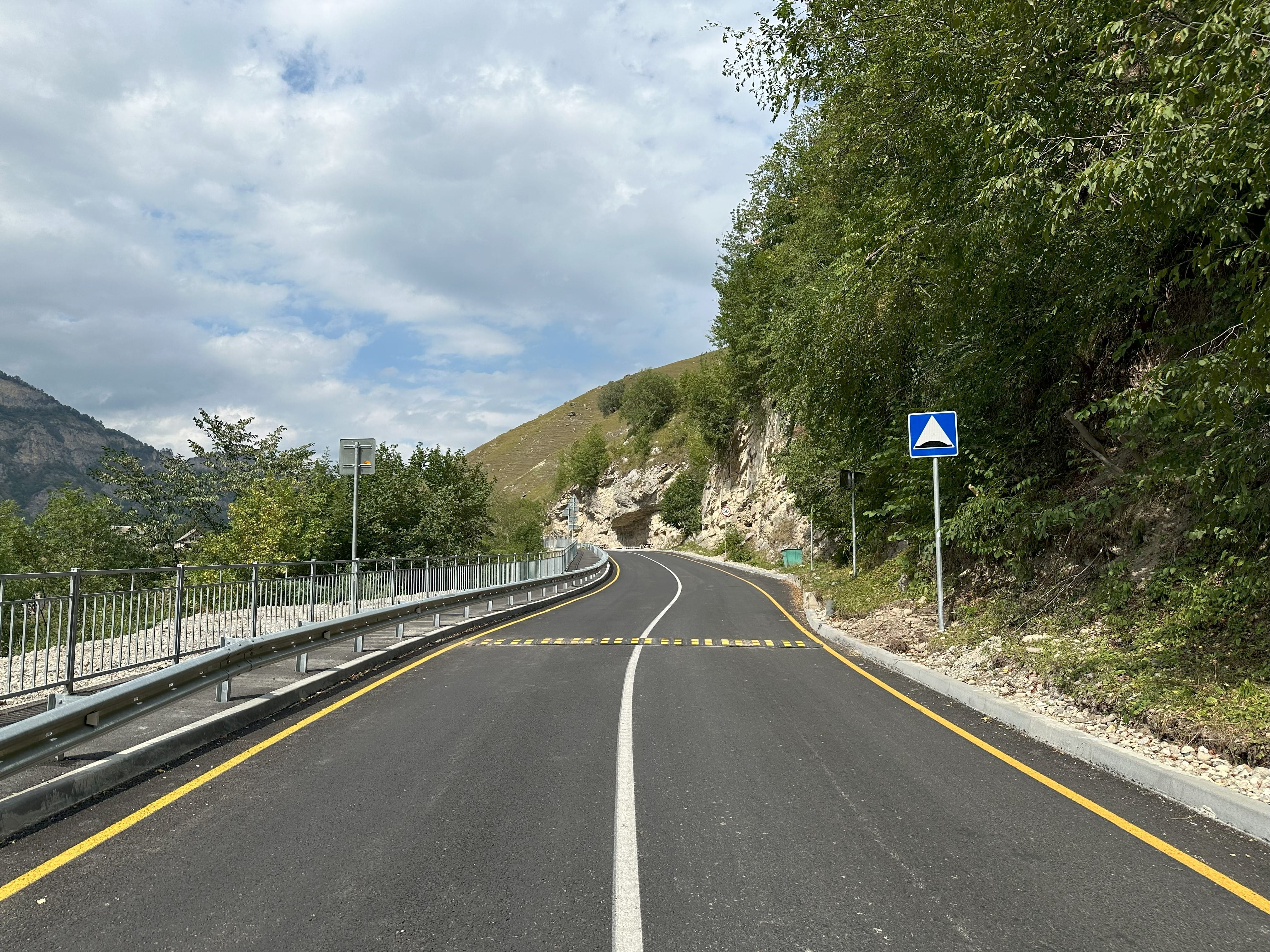 В частности, на региональной сети отремонтировано около 82 км дорог, проходящих через все муниципальные районы республики. Самым сложным с технической точки зрения объектом в 2024 году стал 2-километровый участок реконструкции на трассе Чегем-2 – Булунгу. Строительно-монтажные работы проходили в условиях узкого горного ущелья, где природные особенности ландшафта и суровый климат предъявляли особые требования к квалификации и опыту дорожников. В результате проезжую часть расширили до 7 м, что значительно улучшило пропускную способность дороги. Вдоль всего участка установлено наскальное освещение, для удобства пешеходов и туристов проложена специальная тротуарная дорожка, дополнительно организованы смотровые площадки.