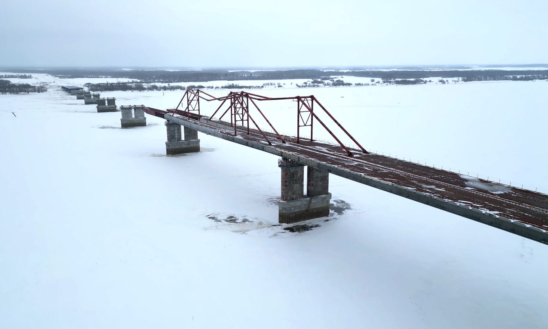 Сейчас на основной переправе готовы уже все 16 опор. На правом берегу реки Обь завершена надвижка пролетного строения с 16 по 13 опоры. С левого берега надвижка пролетного строения с 1 по 13 опору выполнена на 73,2%, закончить эти работы планируется в первом квартале 2025 года.