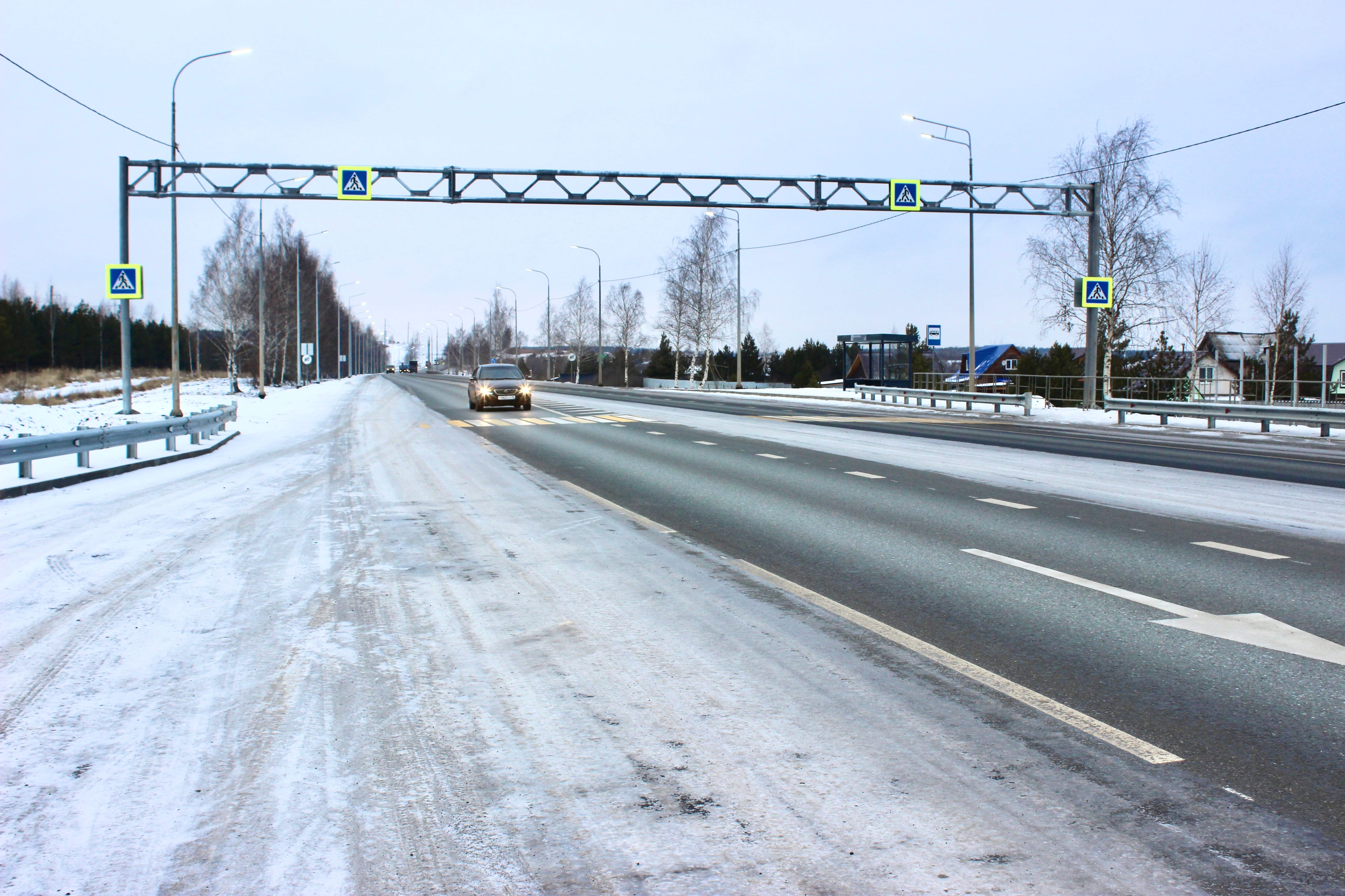 «В сжатые сроки — с июля этого года — на объекте выполнили основной ход дороги, полностью реконструировали круговое движение на въезде в Сарапул. На пересечениях со второстепенными дорогами и на примыканиях добавлены полосы разгона и торможения, проезжая часть доведена до 9 м. Смонтировано освещение порядка 8 км, установлен светофорный объект, оборудованы пешеходные переходы. Также на новом участке обустроены шесть остановочных комплексов с автопавильонами. Участок реконструкции доведен до второй технической категории», — пояснил начальник отдела КУ УР «Управтодор» Дмитрий Кожеев.